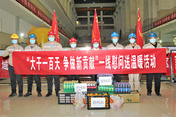 中國電力網(wǎng)訊  為做好“大干一百天、爭作新貢獻”沖刺全年任務(wù)目標(biāo)各項工作和打好能源保供攻堅戰(zhàn),結(jié)合3號機組A級檢修實際,內(nèi)蒙古大唐海勃灣水利樞紐開發(fā)有限公司工會細致深入做好做實一線慰問和送溫暖工作,夜間趕赴生產(chǎn)現(xiàn)場對生產(chǎn)一線職工進行慰問,將水果、飲料等物品送至職工手中,進一步加強對職工的關(guān)心關(guān)愛。