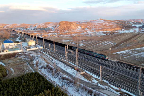 圖為滿載煤炭的列車行駛通過(guò)大準(zhǔn)線九蘇木站