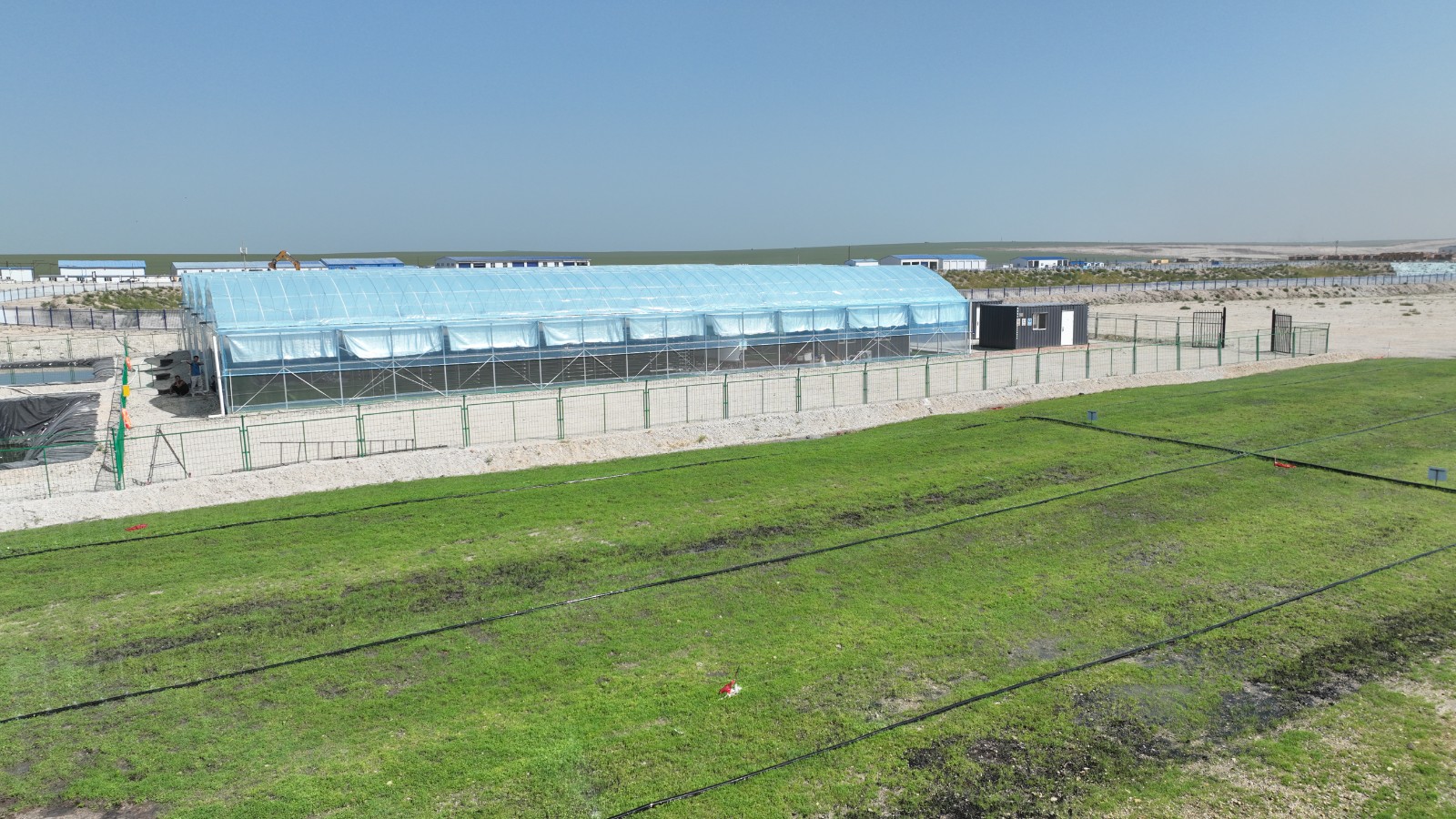 由新能源院研發(fā)的這一微藻固碳系統(tǒng)于今年5月27日在寶日希勒礦開工,已建成5萬平方米示范工程,月產(chǎn)微藻活性液150噸、高營養(yǎng)腐殖土100噸。澆灌了微藻藻液的實驗田,植物生長率提高20%。