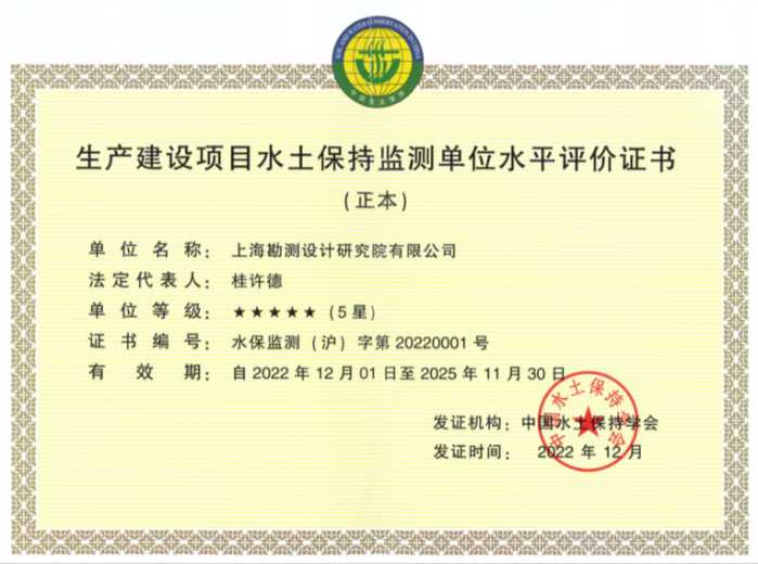 五星級(jí)是水土保持監(jiān)測單位評(píng)價(jià)證書中的最高等級(jí)。2022年,全國參與評(píng)定的單位超700家,僅28家單位被評(píng)定為五星級(jí)。加上既有的生產(chǎn)建設(shè)項(xiàng)目水土保持方案編制水平評(píng)價(jià)四星級(jí)證書、水土保持施工監(jiān)理乙級(jí)資質(zhì)證書,三峽上海院已成為上海市水土保持行業(yè)資質(zhì)種類最全的單位。(三峽上海院供圖)