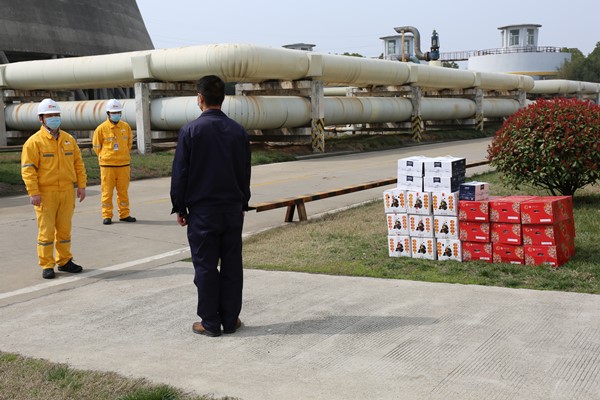 中國電力網(wǎng)訊 嚴(yán)峻的疫情形勢牽動人心,奮戰(zhàn)在防控一線的后勤服務(wù)者們各司其職、各盡其責(zé),為打贏這場沒有硝煙的戰(zhàn)爭不懈努力,堅守抗疫。3月11日上午,南京化學(xué)工業(yè)園熱電有限公司(以下簡稱:公司)領(lǐng)導(dǎo)及工會,為抗疫一線的后勤服務(wù)人員送去關(guān)心慰問,鼓勵他們再接再厲,擔(dān)當(dāng)作為,繼續(xù)扎實做好疫情防控各項工作,堅決打贏疫情防控阻擊戰(zhàn)。