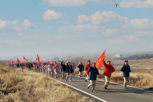 徒步隊(duì)伍精神飽滿、興致高昂、闊步向前,走出廠門后從虎山腳下沿黃營(yíng)村棗林觀光道向上前行。途經(jīng)之處生態(tài)風(fēng)景獨(dú)特、空氣凌冽清澈,全體人員邁著矯健的步伐、排著整齊的隊(duì)伍、揮舞著鮮艷的國(guó)旗,激情迸發(fā)、活力四射,徒步完成近7公里的路程,在碧空湛藍(lán)、冬陽高照的風(fēng)景里,描繪了一幅幅團(tuán)結(jié)一心、眾志成城的拼搏畫面。