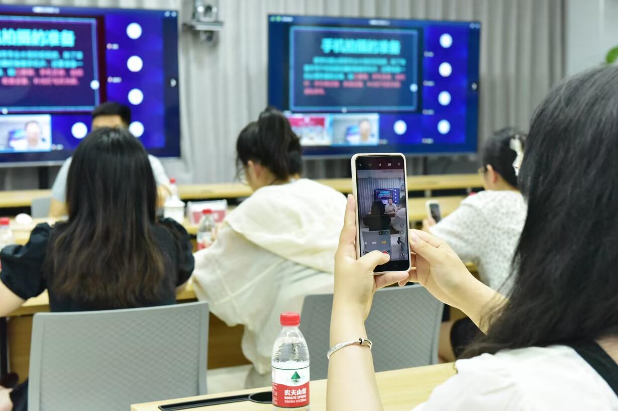 培訓(xùn)采取“線上+線下”的方式,培訓(xùn)中,丁老師運用“理論+案例+實操”的方法,以大量優(yōu)秀作品為例,結(jié)合自身長期以來從事短視頻創(chuàng)作實戰(zhàn)經(jīng)驗,從手機拍攝的景別選擇、光線調(diào)整、畫面構(gòu)圖等方面對拍攝知識進行了詳細(xì)講解與分析,同時為大家推薦了幾款視頻剪輯軟件,并鼓勵大家,拍攝一定要勇于嘗試、敢于試錯,盡情在實踐中不斷嘗試各種技巧和方法,有效提升參加學(xué)員的興趣和熱情。學(xué)員們紛紛表示,這次培訓(xùn)受益匪淺,在今后的工作和生活中,將學(xué)以致用,不斷探索提升,用更加專業(yè)的水平記錄工作和生活中的影像。課程最后,老師還與學(xué)員們就手機拍攝與制作過程中遇到的各種問題進行了交流。