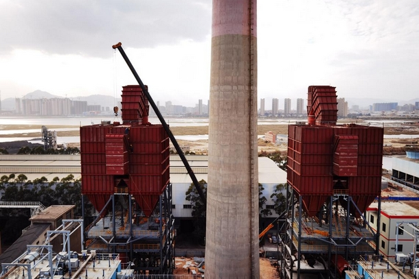 中國電力網訊 11月16日,福建晉江熱電公司鍋爐脫硫除塵改造項目完成封頂關鍵節(jié)點,脫硫塔與布袋除塵器形成貫通。