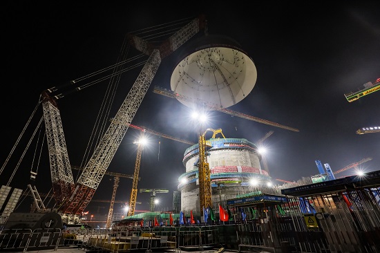 2月21日,華能海南昌江核電二期工程3號機組內穹頂?shù)跹b就位,標志著該機組從土建施工階段全面轉入安裝階段。