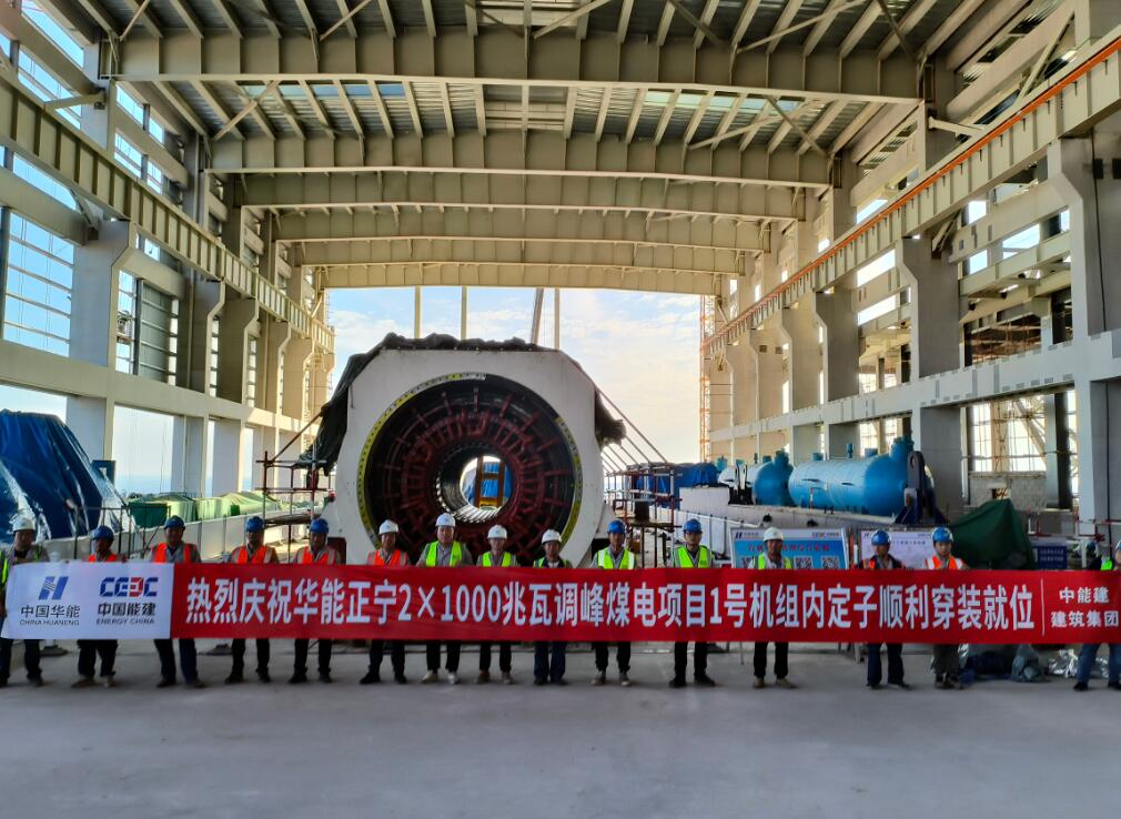 華能正寧百萬項目1號機組內(nèi)定子順利穿裝就位
