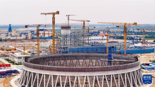 6月5日拍攝的位于山東省鄆城縣的大唐鄆城630℃國(guó)家電力示范項(xiàng)目建設(shè)現(xiàn)場(chǎng)(無(wú)人機(jī)照片)。