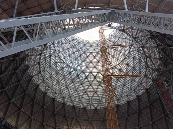 近日,山東能源靈臺電廠2*1000兆瓦調峰煤電項目間接空冷系統(tǒng)工程項目兩座間冷塔實現(xiàn)同時成功封頂,作為目前國內最高的山東能源電力集團靈臺電廠間冷塔(鋼結構)雙塔同時封頂尚屬國內首次,標志著隴東至山東特高壓直流輸電工程配套擴容升級山東能源靈臺2*1000兆瓦調峰煤電項目實現(xiàn)了又一關鍵節(jié)點,具有里程碑意義。