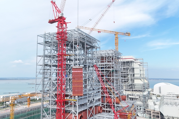 圖為北海公司4號鍋爐受熱面吊裝現(xiàn)場