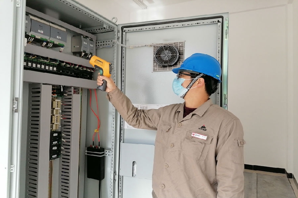 圖為技術(shù)人員正檢查DCS電源模塊溫度