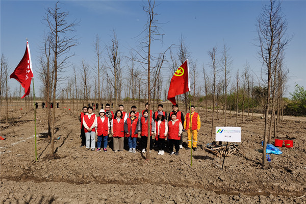 本次活動由來自江北新區(qū)財政局、建設投資集團、綜合行政執(zhí)法總隊黨員代表,新材料科技園領導及紀工委、機關、團工委、公用事業(yè)公司、市政綠化公司黨員、團青代表共計百余人參加。植樹地點在緊鄰公司的岳子河,16塊責任區(qū)順著道路兩旁依次排開,我公司青年員工代表身著鮮亮的工裝,在春日的暖陽下顯得格外奪目。聽從園區(qū)團工委的指揮,我公司青年代表擼起袖子就是干,一人挖坑、一人扛樹、一人扶樹、一人填土。從烈日當空干到落日余暉,對他們來說好像就是一眨眼的工夫,一望無際的荒地上像是插上了百歲老人的生日蠟燭,兩人多高的樹木帶著點點新芽,無人問津的土地煥發(fā)出了盎然生機。