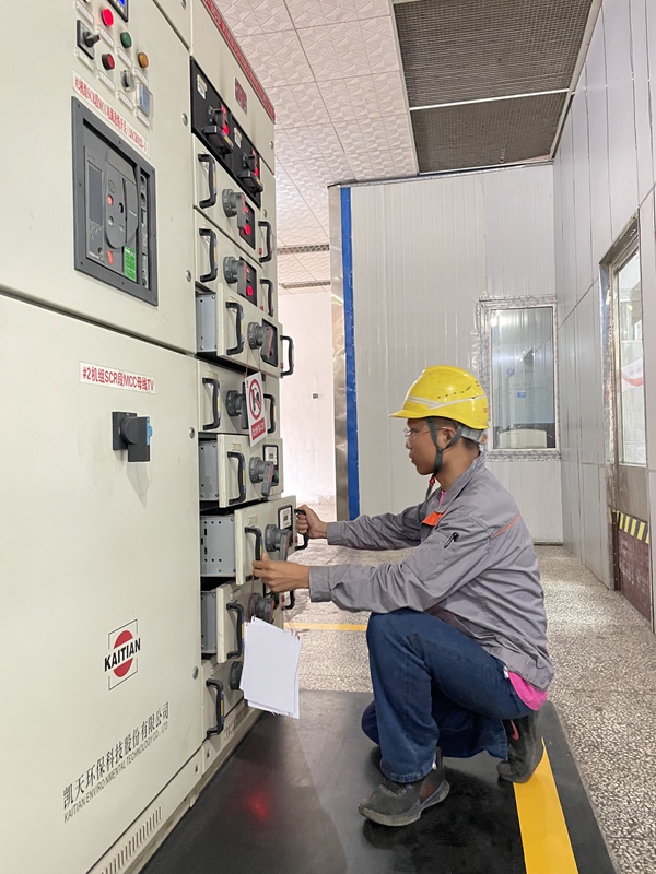 龔鑫(檢修團(tuán)支部書記):我現(xiàn)在正和青年黨員劉俊在一期脫硫區(qū)域?qū)?A粉倉漿液循環(huán)泵變頻器進(jìn)行主板更換和參數(shù)調(diào)試工作。由于變頻器故障,導(dǎo)致粉倉漿液循環(huán)泵不能正常啟動(dòng)運(yùn)行,為保證機(jī)組更快具備開機(jī)條件,工作人員在完成檢修項(xiàng)目后立馬又轉(zhuǎn)戰(zhàn)到設(shè)備消缺工作,為機(jī)組搶發(fā)電量設(shè)備安全平穩(wěn)運(yùn)行,順利迎峰度夏打下堅(jiān)實(shí)的設(shè)備基礎(chǔ)。作為發(fā)電企業(yè)的青年員工,我們要立足崗位,全力以赴完成機(jī)組檢修,認(rèn)真消除設(shè)備隱患,不留余力的保障機(jī)組設(shè)備安全穩(wěn)定運(yùn)行,勇?lián)嗄耆说膴^進(jìn)使命。