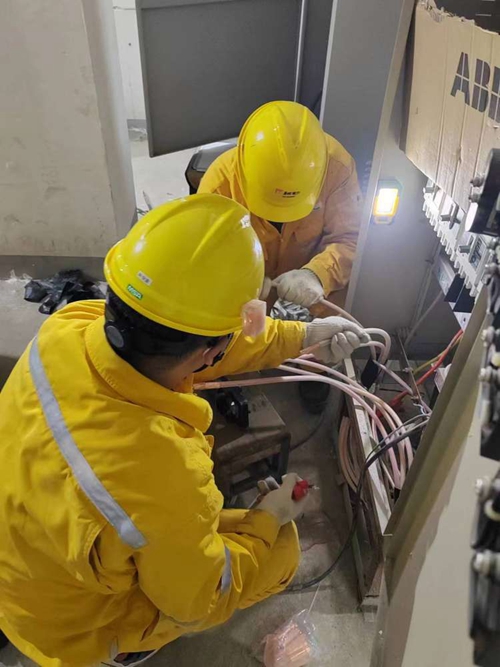 當一切方案和材料都就位后,又一個問題出現(xiàn)了,那就是人手。工程部電氣專業(yè)僅有兩位同志,可是即要工作不打折扣地全部完成,又要是以最短的工期結(jié)束戰(zhàn)斗,這就成了不可能的任務。然而,協(xié)同作戰(zhàn)從來都是華潤人的優(yōu)良傳統(tǒng)。接到需要支持的信號后,華潤電力徐州公司維修部派來了四名專業(yè)技術(shù)人員,熱力公司的生產(chǎn)部也抽調(diào)了電氣班組的人員參與其中。