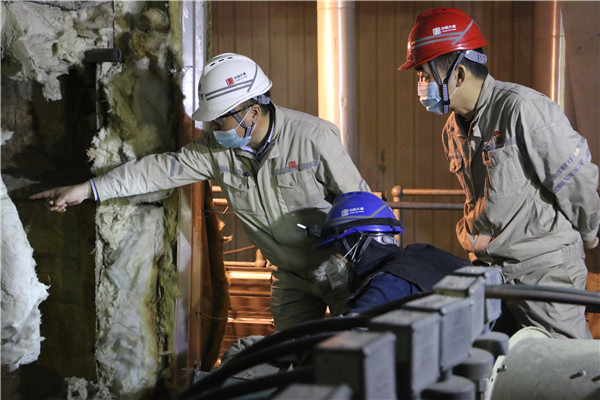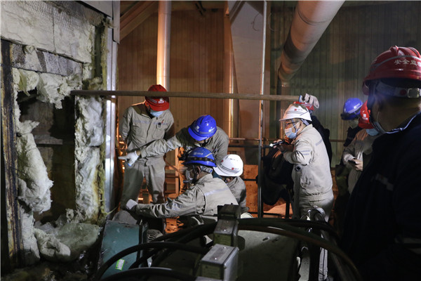 此次消缺期間室外最低氣溫達(dá)到零下20度左右,防寒防凍無疑是消缺工作的重中之重,長山廠及時(shí)切換供熱方式,利用化廠備用熱源為家屬區(qū)供熱,同時(shí)也為防寒防凍工作、機(jī)組順利啟動提供可靠保證。在此期間,各單位各負(fù)其責(zé),全員行動,全面開展防寒防凍工作。發(fā)電部作為主體責(zé)任部門,從主任到單元長,從值班員到巡檢員,明確區(qū)域,認(rèn)真排查,每小時(shí)測量廠房所有區(qū)域溫度,同時(shí)對門窗封閉、室外管路保溫等防寒防凍措施進(jìn)行再次確認(rèn);設(shè)備部一方面制定方案組織相關(guān)單位消缺,一方面全面安排部署極寒天氣下的防寒防凍工作;各車間(分場)在生產(chǎn)廠房各層重要部位設(shè)置炭火爐,對熱控表管表計(jì)、電氣電子間盤柜、氨區(qū)管路進(jìn)行檢查,增加伴熱帶,設(shè)置值班人員監(jiān)測環(huán)境溫度,全力以赴確保防寒防凍工作萬無一失。消缺期間,行政事務(wù)部積極做好后勤保障工作,按時(shí)準(zhǔn)備盒飯送到現(xiàn)場,助力消缺工作順利完成。