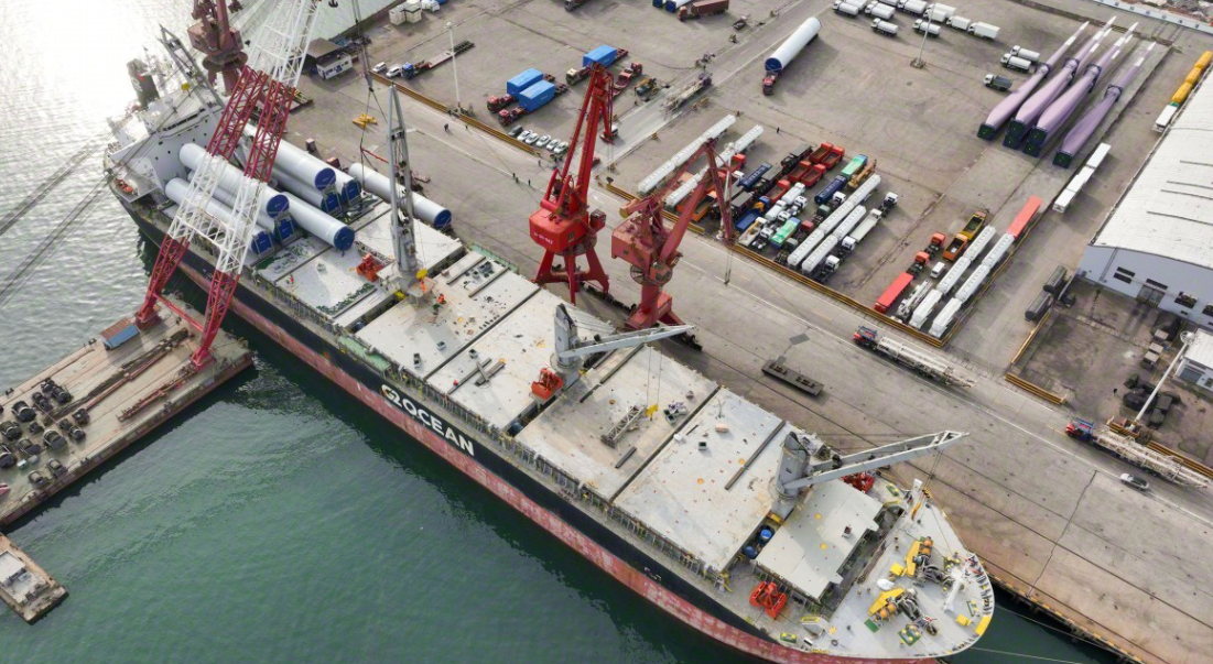 2月22日,一艘巴哈馬籍貨輪在連云港港東方港務(wù)分公司碼頭裝運(yùn)出口風(fēng)電塔架。近年來,連云港港積極打造海上絲路出???,開辟風(fēng)電設(shè)備出口綠色通道,助力大批風(fēng)電設(shè)備走向世界。據(jù)統(tǒng)計(jì),今年1月份出口風(fēng)電設(shè)備16.97萬方,同比增長48%。