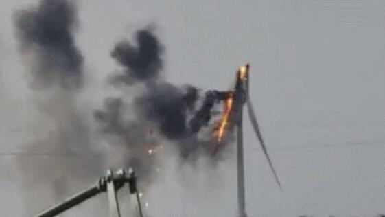 根據(jù)目擊者和消防員提供的視頻,這臺(tái)風(fēng)力渦輪發(fā)電機(jī)被雷擊中后,葉片邊旋轉(zhuǎn)邊燃燒,被燒焦后掉落,現(xiàn)場(chǎng)濃煙滾滾。
