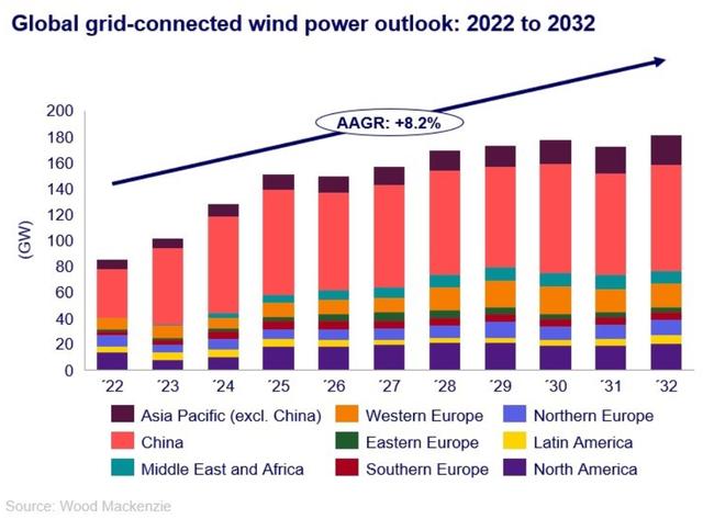 咨詢公司伍德麥肯茲(Wood Mackenzie)在本周二表示,由于美國海上風(fēng)電行業(yè)的財務(wù)困難,以及中國對于風(fēng)電項目的審批和裝機進(jìn)展緩慢,未來十年,全球風(fēng)電行業(yè)新增裝機容量將低于此前的預(yù)期。