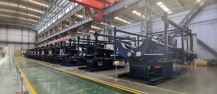 在大規(guī)模生產(chǎn)工作中,有效拓寬生產(chǎn)空間、采用精細化車間定置管理將極大提升生產(chǎn)效率。生產(chǎn)團隊根據(jù)物資到貨情況及生產(chǎn)進程,合理規(guī)劃空間布局,提高空間利用率的同時兼顧后續(xù)工序便利性。充分利用外場地及庫房空間,巧思布置,使得大批量存放半成品機組得以實現(xiàn)。整齊劃一的機組,形成了華銳風(fēng)電一道最美的風(fēng)景線。