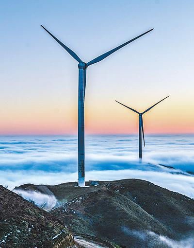 圖為近日拍攝的湖南省常寧市風電設備。