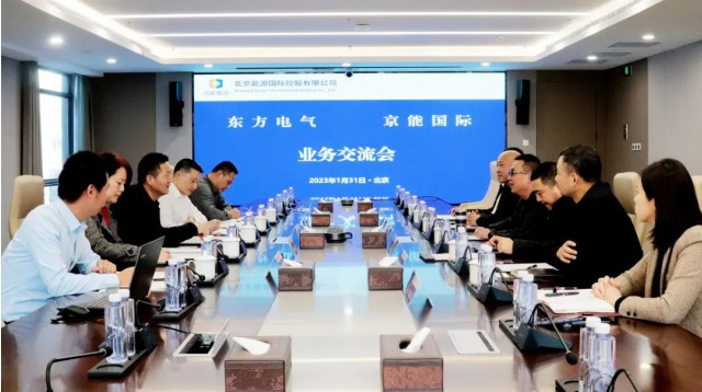 2023年1月31日,北京能源國際控股有限公司總裁朱軍在北京會見東方電氣風電股份有限公司總經(jīng)理葛紅兵一行,雙方就新能源領(lǐng)域深入合作進行座談交流。東方電氣風電研究院副院長曾志,營銷中心副主任駱麗竹、張軍,營銷中心北方大區(qū)總監(jiān)梁雄;京能國際副總裁賈耕、王六虎,安全生產(chǎn)總監(jiān)周國,計劃經(jīng)營部總經(jīng)理劉吉廣等相關(guān)人員參加會議。