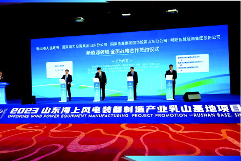 活動(dòng)現(xiàn)場,乳山與國家電力投資集團(tuán)山東分公司、國家能源集團(tuán)投資山東分公司、明陽智慧能源集團(tuán)股份公司等8家企業(yè)現(xiàn)場簽署合作協(xié)議,同時(shí),啟動(dòng)了國華科技創(chuàng)新中心建設(shè)。