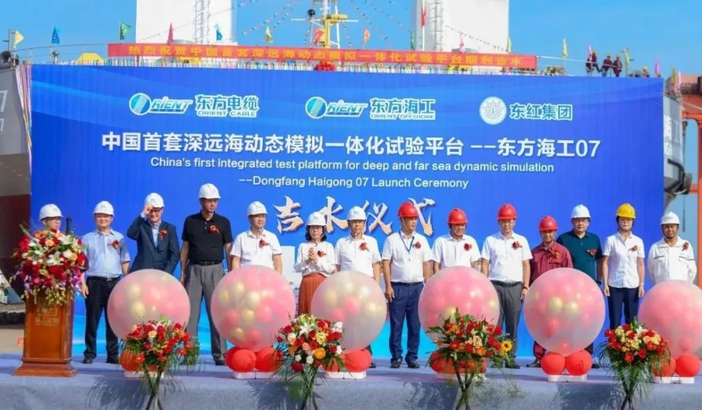 東方海工07號(hào)長(zhǎng)128m,寬42m,型深9米,為全鋼制無(wú)動(dòng)力固定式平臺(tái),安裝有2個(gè)36m大直徑電纜轉(zhuǎn)盤(pán)、平臺(tái)上配備串聯(lián)諧振耐壓測(cè)試設(shè)備、絕緣電阻測(cè)試儀、彎曲剛度試驗(yàn)機(jī)、疲勞試驗(yàn)機(jī)等海纜檢測(cè)設(shè)備10余臺(tái)(套),總投入約1.6億元。