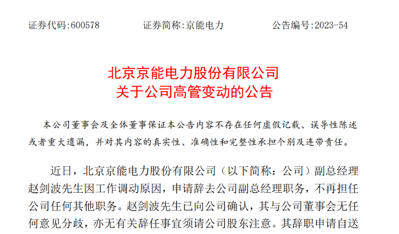11月18日,北京京能電力股份有限公司(以下簡(jiǎn)稱“京能電力”或“公司”)發(fā)布《關(guān)于公司高管變動(dòng)的公告》。