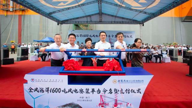 8月8日,新一代深遠海1600噸風電安裝平臺“中天31”命名暨交付儀式在江蘇南通舉行。南通市委副書記、代市長張彤,陽江市委副書記、市長余金富,招商局工業(yè)集團黨委副書記、副總經(jīng)理吳四川,金風科技集團董事長武鋼,中天科技集團董事長薛濟萍,以及三峽集團、國家電投集團、中廣核新能源公司等客戶代表出席儀式。