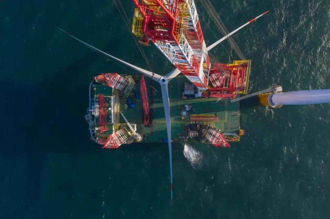 11月23日,伴隨著最后一支葉輪與機(jī)艙在百余米高空實(shí)現(xiàn)精準(zhǔn)對(duì)接,中廣核南鵬島海上風(fēng)電項(xiàng)目整場(chǎng)機(jī)組全部完成吊裝,至此,國(guó)內(nèi)首個(gè)大單體容量海上風(fēng)電項(xiàng)目全面進(jìn)入調(diào)試并網(wǎng)階段。該項(xiàng)目總裝機(jī)容量40萬(wàn)千瓦,采用73臺(tái)明陽(yáng)智能MySE5.5MW半直驅(qū)機(jī)組。