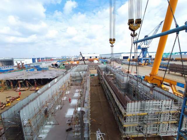 如東海上換流站包含基礎(chǔ)樁、導(dǎo)管架、上部模塊3大部分,其建造規(guī)模約為常規(guī)220千伏海上升壓站的7-8倍。換流站的上部模塊為七層建筑,平面尺寸約為84米×94米,相當(dāng)于一個足球場大小,高約44米,總重約20000噸。