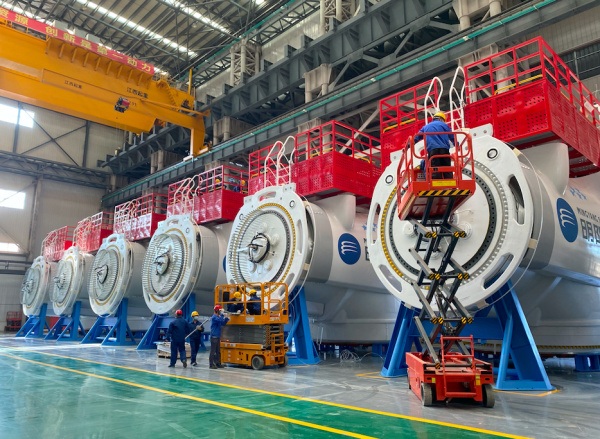 明陽智能海上風(fēng)電產(chǎn)業(yè)園內(nèi)設(shè)備高效運(yùn)轉(zhuǎn)、操作者各司其職 陳坂升 攝
