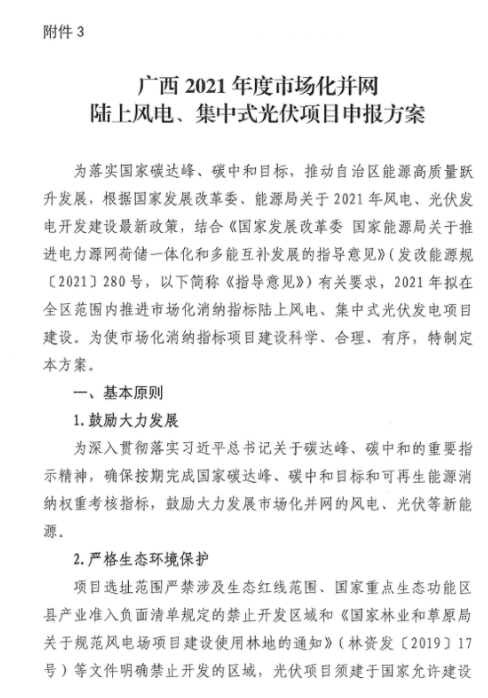 廣西壯族自治區(qū)發(fā)展和改革委員會關(guān)于申報2021年陸上風(fēng)電、光伏發(fā)電項目的通知
