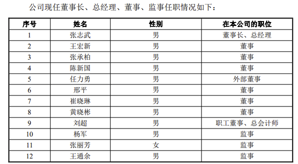 經(jīng)研究決定,聘任張志武擔(dān)任公司董事長(zhǎng)、總經(jīng)理,聘任王宏新、陳新國(guó)、崔曉琳、黃曉彬、劉超擔(dān)任公司董事,聘任楊軍、張麗芳、王通余擔(dān)任公司監(jiān)事;陳遂卸任董事長(zhǎng),李亦倫卸任董事、總經(jīng)理,夏林泉卸任外部董事,王宏新卸任監(jiān)事。