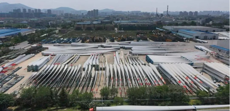 江蘇連云港大浦工業(yè)園區(qū)內,一支支百米長的“龐然大物”整齊碼放,等待奔赴深藍。中復連眾復合材料集團有限公司生產經理薄杉杉指著它們說:“我們現在生產一只葉片只需要十來天的時間,可在十幾年前,我們連一支大風機機組葉片都造不出來,全得指望進口。”