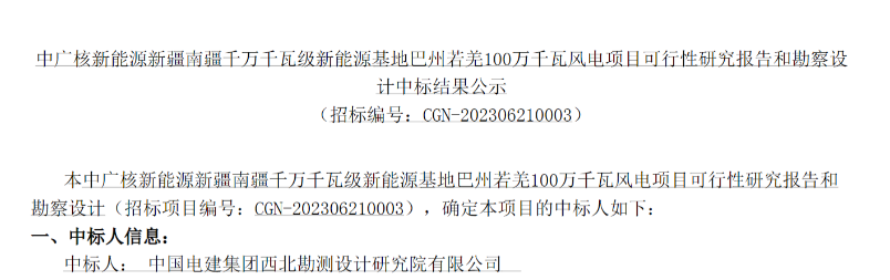 公告顯示,中國(guó)電建集團(tuán)西北勘測(cè)設(shè)計(jì)研究院有限公司成功中標(biāo)該項(xiàng)目,中標(biāo)價(jià)格為14,500,000.00元。