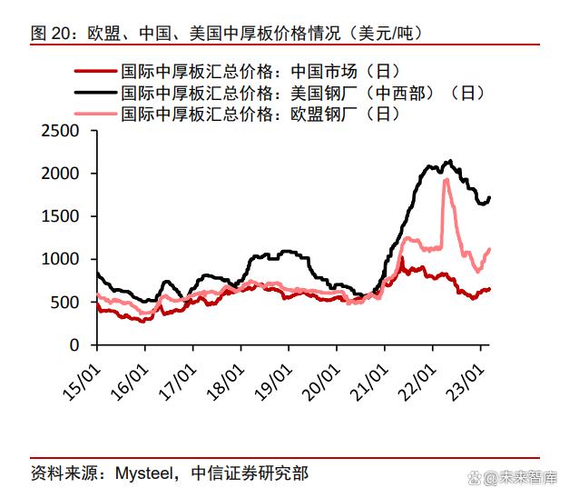 海外塔筒樁基生產(chǎn)成本高昂,國內(nèi)成本優(yōu)勢強化。對比歐洲單樁龍頭 Sif 平均出貨價 格近 2500 歐元/噸(約合人民幣 1.9 萬元/噸),且供需緊縮呈價漲趨勢,我國單樁價格約 0.8 萬元/噸。在原材料成本方面,以天風順能披露的數(shù)據(jù)為例,鋼材、法蘭等原材料成本 占塔筒總成本的 82%,其中鋼板(中厚板)成本占 57%,對比俄烏戰(zhàn)爭爆發(fā)以來的歐洲 鋼材價格暴漲,中厚板國內(nèi)外價差拉大。2023 年 3 月歐盟鋼廠中厚板均價 1100 美元/噸, 美國鋼廠均價 1710 美元/噸,而中國市場均價 649 美元/噸。在人工成本方面,根據(jù)歐盟披 露,歐盟本地塔筒企業(yè)的人均人工成本為 4.8 萬歐元/年,明顯高于國內(nèi)主要塔筒企業(yè)的人 均薪酬。我們預計塔筒環(huán)節(jié)有望進一步強化國產(chǎn)出海的成本優(yōu)勢,樁基環(huán)節(jié)暫無反傾銷限 制,有望實現(xiàn)產(chǎn)品出口的突破。