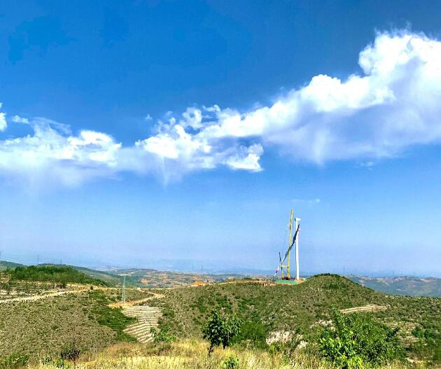 槐花香時麗日晴,風(fēng)起平定山光新。6月6日,由中國能建投資建設(shè)、山西院總承包、山西電建承建的山西平定100兆瓦風(fēng)電項目順首臺風(fēng)機(jī)吊裝任務(wù)完成。這是一次非同尋常的吊裝。平定風(fēng)電項目建設(shè)容量100兆瓦,安裝40臺海裝2.5兆瓦風(fēng)機(jī),機(jī)位大多分布在風(fēng)場各獨(dú)立山頭上,施工區(qū)域海拔高、范圍廣、吊裝難度大。