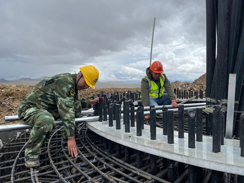 在海拔5000米的西藏高原,多陣風(fēng)、高風(fēng)速,人員降效嚴(yán)重,項(xiàng)目部全體人員充分發(fā)揚(yáng)“缺氧不缺精神、艱苦不怕吃苦”的老西藏精神,務(wù)實(shí)篤行,克服場(chǎng)區(qū)海拔高、氣壓低、日照強(qiáng)、雷暴多發(fā)、空氣密度極低、溫差幅度大、人員高原反應(yīng)強(qiáng)烈等不利因素,從施工技術(shù)方案、施工組織設(shè)計(jì)、管理措施、關(guān)鍵工序、標(biāo)準(zhǔn)化施工工藝等方面綜合考慮,超前策劃、周密部署、精心組織、科學(xué)決策、精心施工,歷經(jīng)1個(gè)月攻堅(jiān)克難,如期圓滿完成4臺(tái)風(fēng)機(jī)基礎(chǔ)澆筑,為工程后續(xù)施工的順利推進(jìn)打下了堅(jiān)實(shí)基礎(chǔ)。
