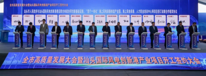 大會云集了金風科技、中車永濟、德力佳、中材科技、北京鑒衡、華潤電力、京能集團等國內海上風電裝備制造龍頭企業(yè)及能源企業(yè),為海上風電母港、“四個一體化”海上風電裝備制造產業(yè)園、廣東省臨海試驗基地項目等一批海上風電產業(yè)關鍵環(huán)節(jié)重點項目舉辦了集中簽約開工儀式,正式拉開了汕頭國際風電創(chuàng)新港建設熱潮!