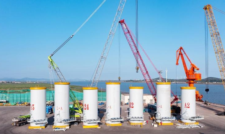 大型海上風(fēng)電設(shè)備在乳山港轉(zhuǎn)運(yùn)