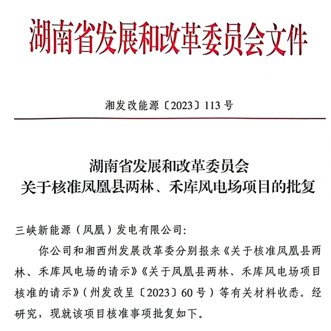 近日,湖南省發(fā)改委正式核準湘西鳳凰兩林、禾庫風(fēng)電項目。