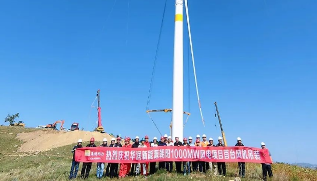 華潤新能源朝陽1000MW風(fēng)電項(xiàng)目首臺風(fēng)機(jī)吊裝完成