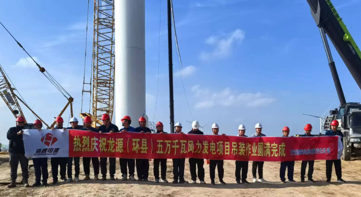 龍源環(huán)縣蘆家灣5萬千瓦風力發(fā)電項目7臺風機吊裝完成