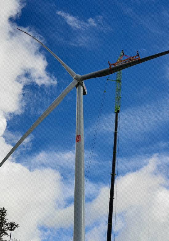 項(xiàng)目現(xiàn)場(chǎng)場(chǎng)地面積有限、吊裝平臺(tái)小,作業(yè)難度大。經(jīng)施工團(tuán)隊(duì)周密策劃、協(xié)調(diào),機(jī)組采用分體運(yùn)輸,吊裝采用單葉片、機(jī)艙、傳動(dòng)鏈空中分體組裝方式進(jìn)行。該項(xiàng)目是東方風(fēng)電首個(gè)機(jī)艙分體且配合單葉片吊裝的項(xiàng)目,有效規(guī)避塔下地形限制,放寬吊車起重性能要求,擴(kuò)大吊車可選擇范圍,提升機(jī)組吊裝效率。該項(xiàng)技術(shù)的成功運(yùn)用為陸上大容量機(jī)組吊裝提供更加有效的解決方案。