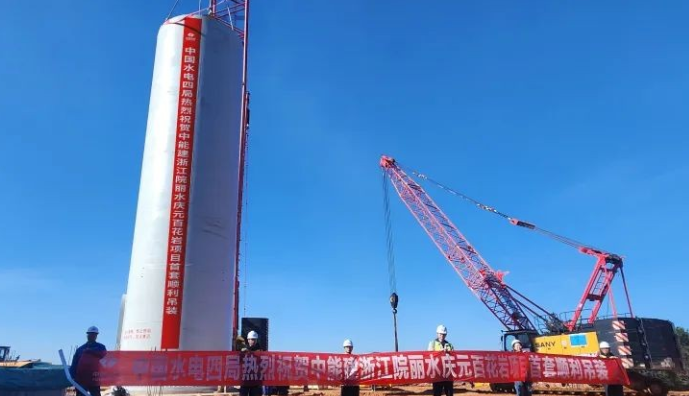 中能建浙江院麗水慶元百花巖項(xiàng)目首套塔筒順利吊裝
