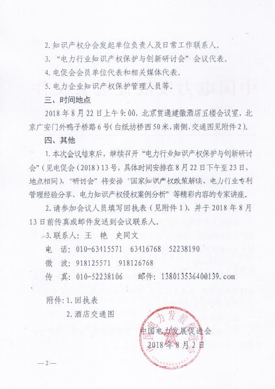 關(guān)于召開(kāi)中國(guó)電力發(fā)展促進(jìn)會(huì)知識(shí)產(chǎn)權(quán)分會(huì)成立大會(huì)的通知