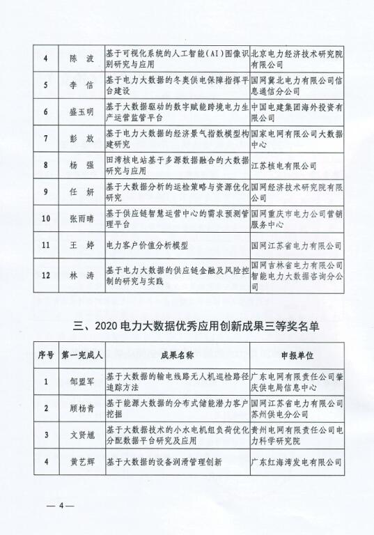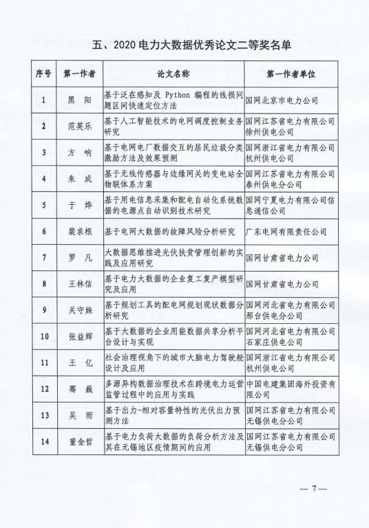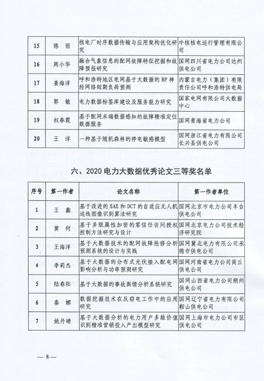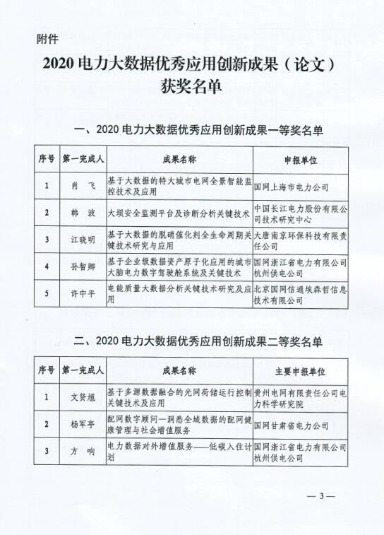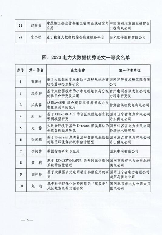 附件:2020電力大數據優(yōu)秀應用創(chuàng)新成果(論文)獲獎名單