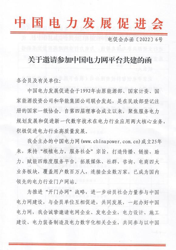 關(guān)于邀請(qǐng)參加中國(guó)電力網(wǎng)平臺(tái)共建的函