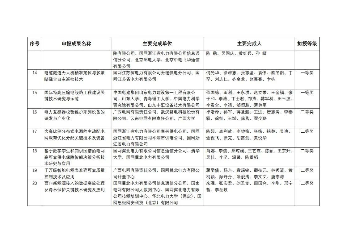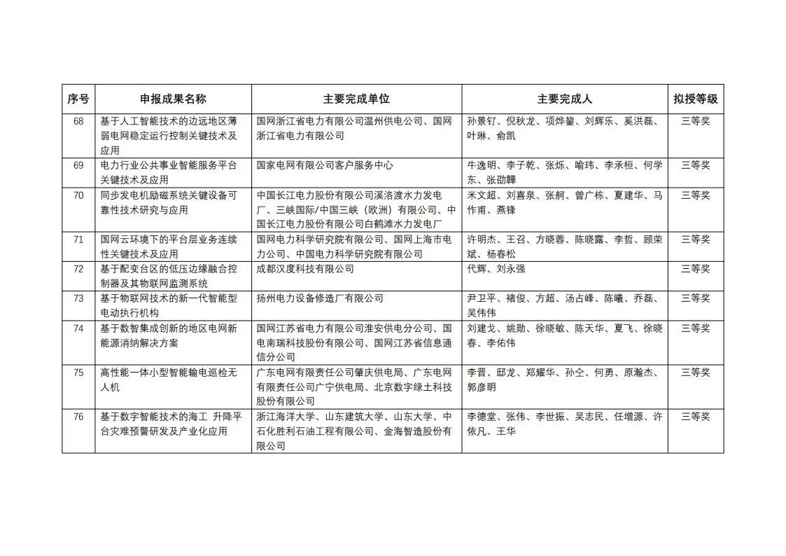 中國電力發(fā)展促進會科學(xué)技術(shù)獎2023年度擬授獎成果公示