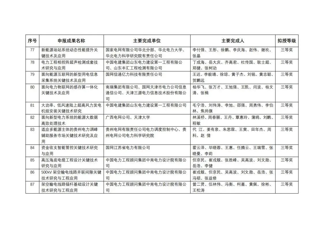 中國電力發(fā)展促進會科學(xué)技術(shù)獎勵委員會于2023年10月18日召開審定會議,審定確認2023年度科學(xué)技術(shù)獎(數(shù)智電力類)擬授獎成果共計87項(排名不分先后),其中擬授一等獎15項、二等獎28項、三等獎44項。